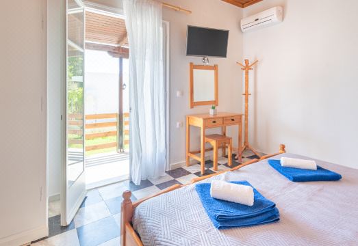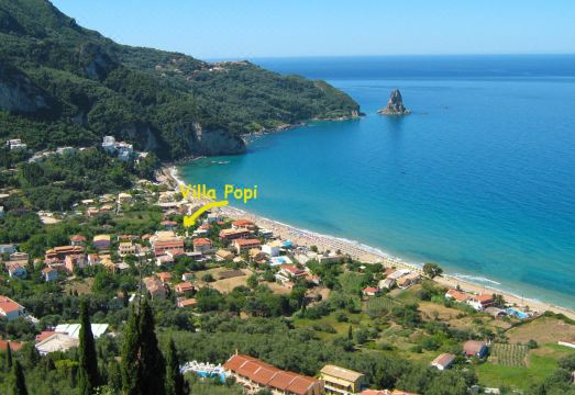 Location: Villa Popi, for 4-6 persons, located in a quiet area, away from mass tourism, on a plot with Mediterranean vegetation, just 50 metres from Agios Gordios beach.