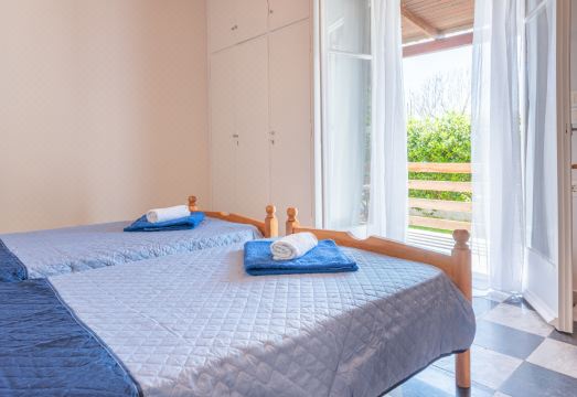 Two large bedroom, one with double bed and the other with 2 single beds. Τhe bedrooms are very large and can accommodate two extra people in extra beds.